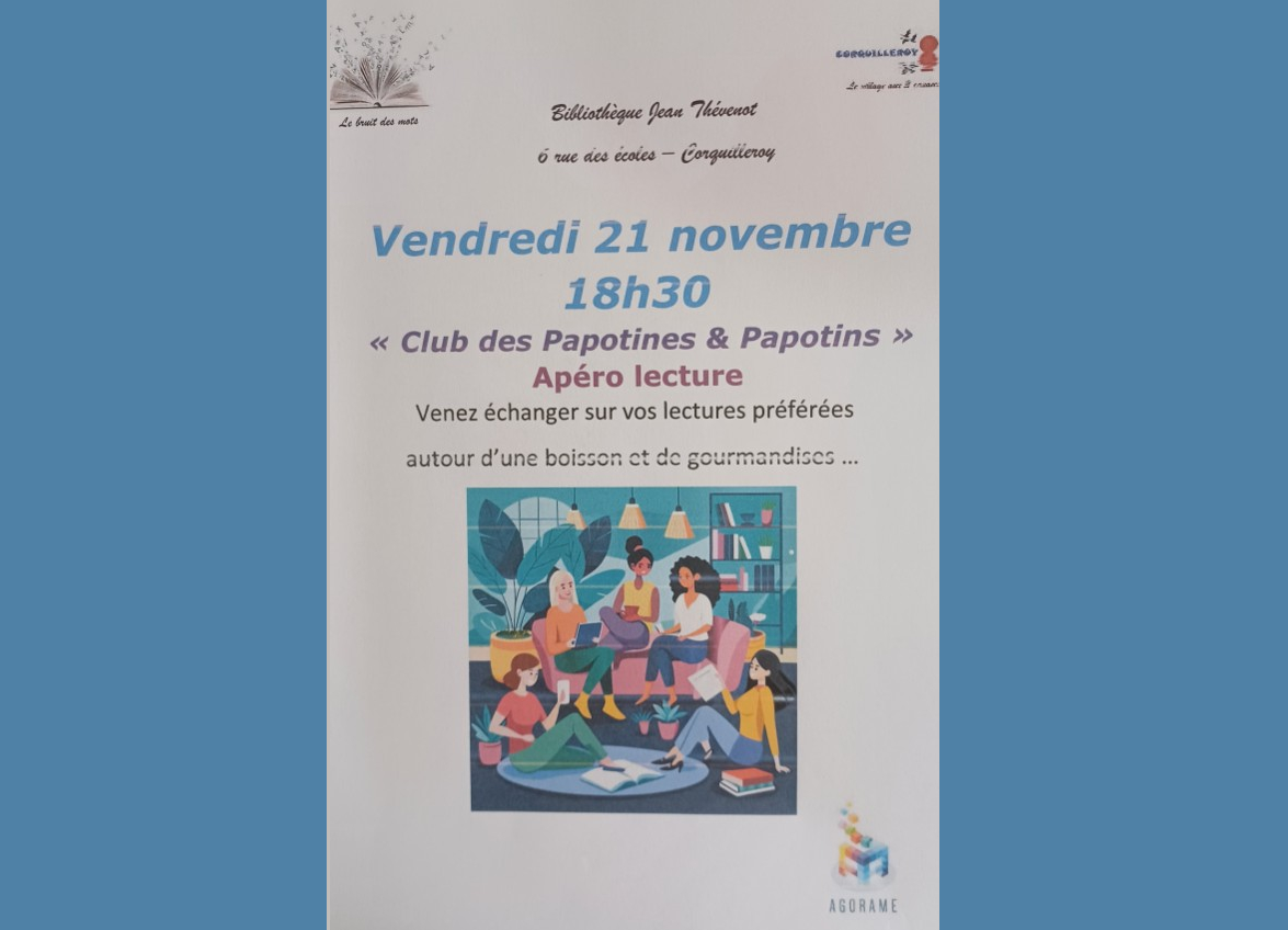 " Club des Papotines & Papotins " - Apéro lecture : le vendredi 21 novembre 2025 à 18h30