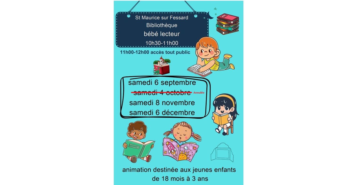 Venez assistez aux séances de lecture bébés lecteurs à la bibliothèque de St Maurice sur Fessard.