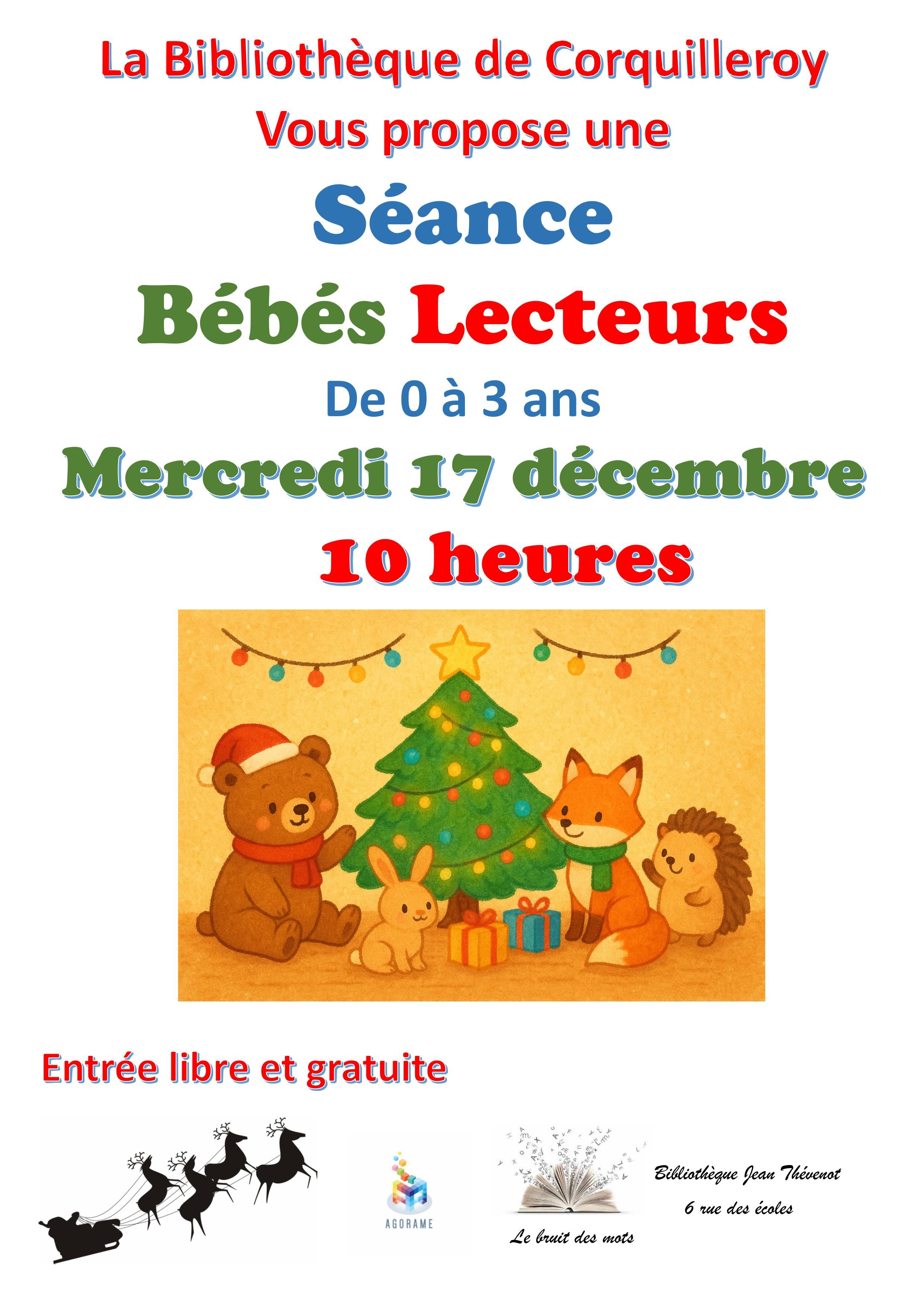 La bibliothèque de Corquilleroy vous propose une séance Bébés lecteurs le mercredi 17 décembre 2025 à 10h. Entrée...